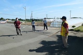 野菜塾のみなさんは不審者が入って来ない様に、力を合わせて