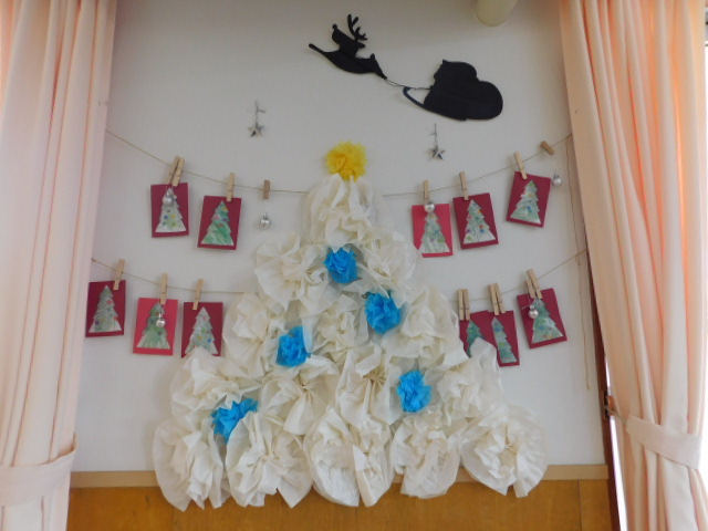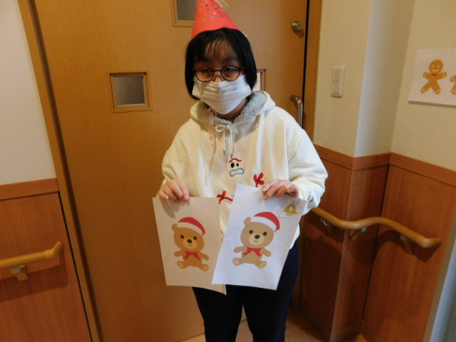 クリスマス会では、クリスマスリース作りをしてクリスマスツリーに飾ったり、絵合わせゲームをしたり、サンタクロースがやってきてプレゼントをもらったりと盛りだくさん!