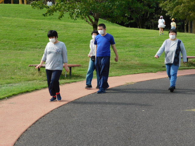 到着すると、園内にある遊歩道を軽快な足どりで散策しました。