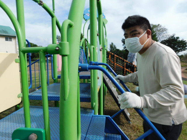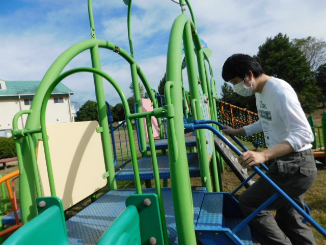 園内には遊具もあり、職員見守りのもと楽しく遊んだり、休憩したりして過ごしました。