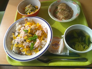 給食も記念日メニューとなっており、豪華な昼食をいただきお祝いしました。