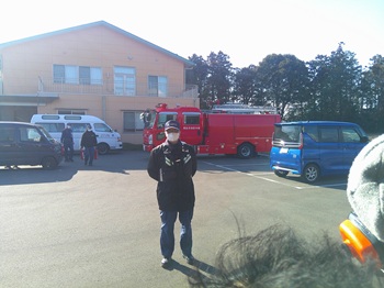 3月1日から7日までの春季全国火災予防運動に合わせ、ふじみ野では11日に避難訓練を実施しました。大間々・新里分署の消防士さん立会いのもと、職員による初期消火から駐車場への全員避難までを行いました。