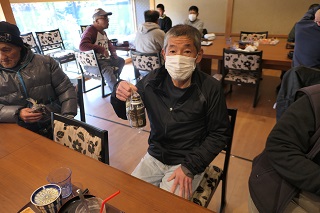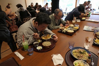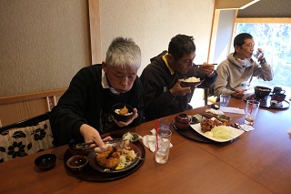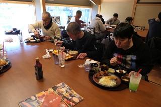 参拝後は近くの食堂に移動し昼食となりました。事前に皆さんに食べたい物の聞き取りを行い注文しました。メインのメニューだけではなく飲み物やパフェなど普段あまり食べないようなデザートを頼まれている方も沢山いました。