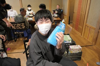 食後は皆でビンゴ大会を行い、全員が空くじなしで景品をゲット出来ました。