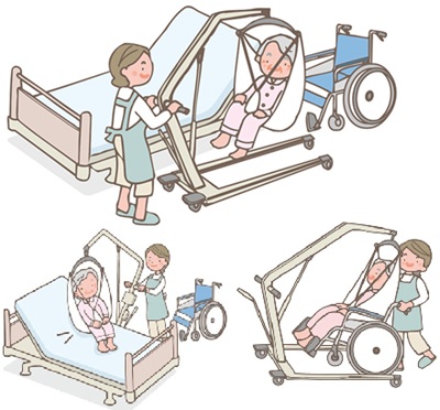 利用者さんたちに安心して安全に移乗して頂くため、ベッドや車椅子への移乗のサポートとして使用しています。